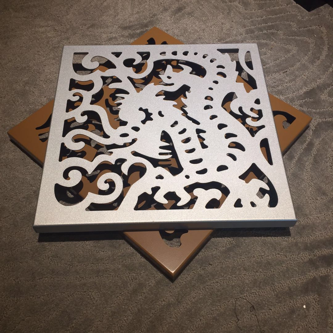 鏤空鋁單板、雕花鋁單板作為一種雕刻藝術品,采用先進的數控激光雕刻設備將鋁板按設計圖形進行雕刻,工藝準確性高,不損傷表面,加工時在冷卻狀態切割,不變形,切割面平滑不刺手,適合各種精度高、復雜圖、大幅圖、異形圖、曲線圖等各種復雜的圖案雕刻,鋁板可加工成各種規格和不同形狀的非標氟碳鏤空鋁單板,鏤空鋁單板、雕花可根據設計師的要求,定制成各種天花、幕墻、包柱等裝飾圖案,可以滿足客戶對鋁單板裝飾的時尚個性追求。